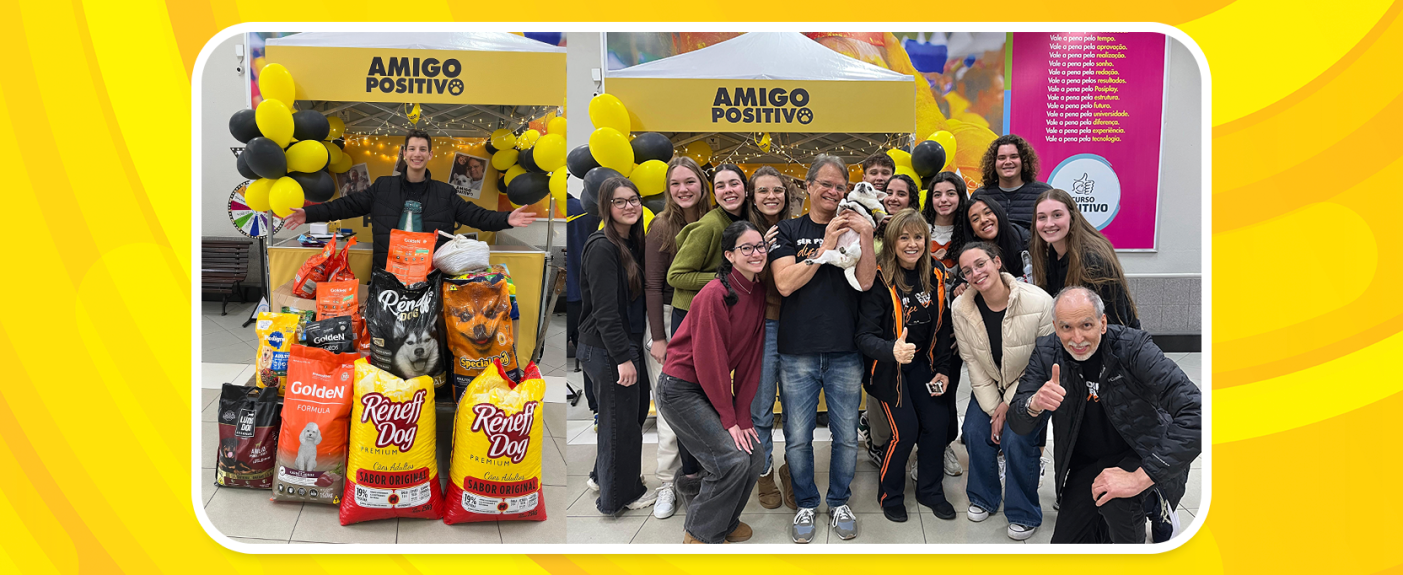 Lançada em agosto pelo Curso Positivo, a campanha Amigo Positivo teve como objetivo arrecadar alimentos para animais resgatados em situação de vulnerabilidade — geralmente vítimas de maus-tratos e abandono — que dependem da solidariedade humana para se recuperar e, quem sabe, um dia encontrar um lar.