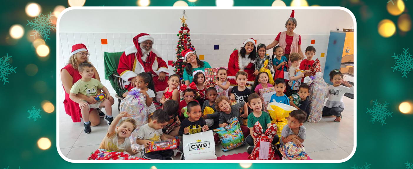 Neste ano, o Curso Positivo participou da tradicional campanha Cartinhas do Papai Noel dos Correios pelo terceiro ano consecutivo e de um jeito especial. Pela primeira vez, os colaboradores se mobilizaram para adotar um CMEI inteiro, assumindo o compromisso de realizar o sonho de 72 crianças. Cada carta retirada representou mais do que um pedido: foi um gesto de cuidado, responsabilidade e encantamento.