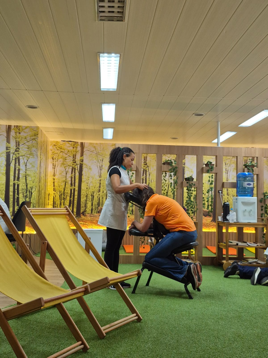 Para as colaboradoras, a ação foi especial: durante o horário de trabalho, elas puderam aproveitar momentos de relaxamento com quick massage, massagem nas mãos ou nos pés, e receberam um kit de chocolates e um presente especial que conectou valores próprios ao do Grupo Positivo. A sala Reset, exclusiva dos alunos do Integral, foi equipada com cadeiras de massagem e reservada para as colaboradoras.
